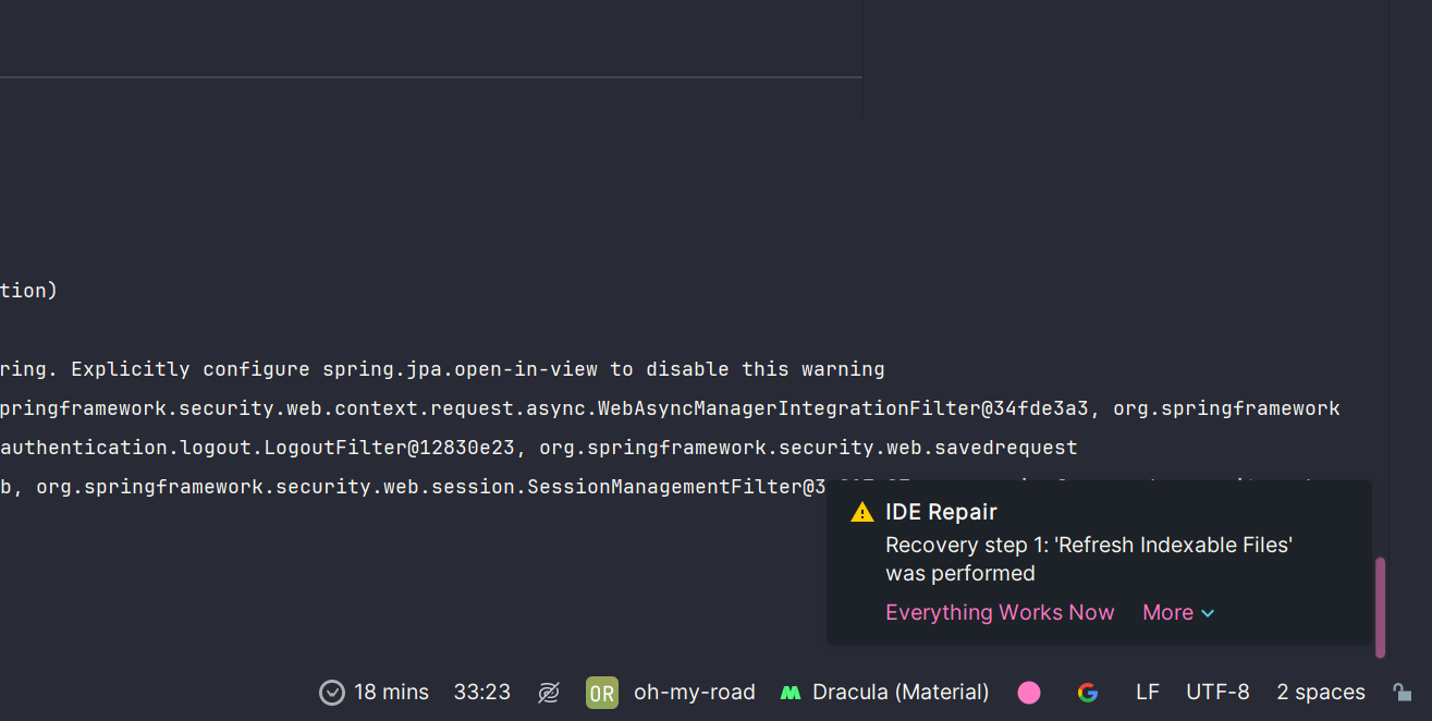 File - Repair IDE 를 클릭하고 우측 하단에 나오는 알림을 클릭하면서 진행해보니 해결되는 경우도 있고