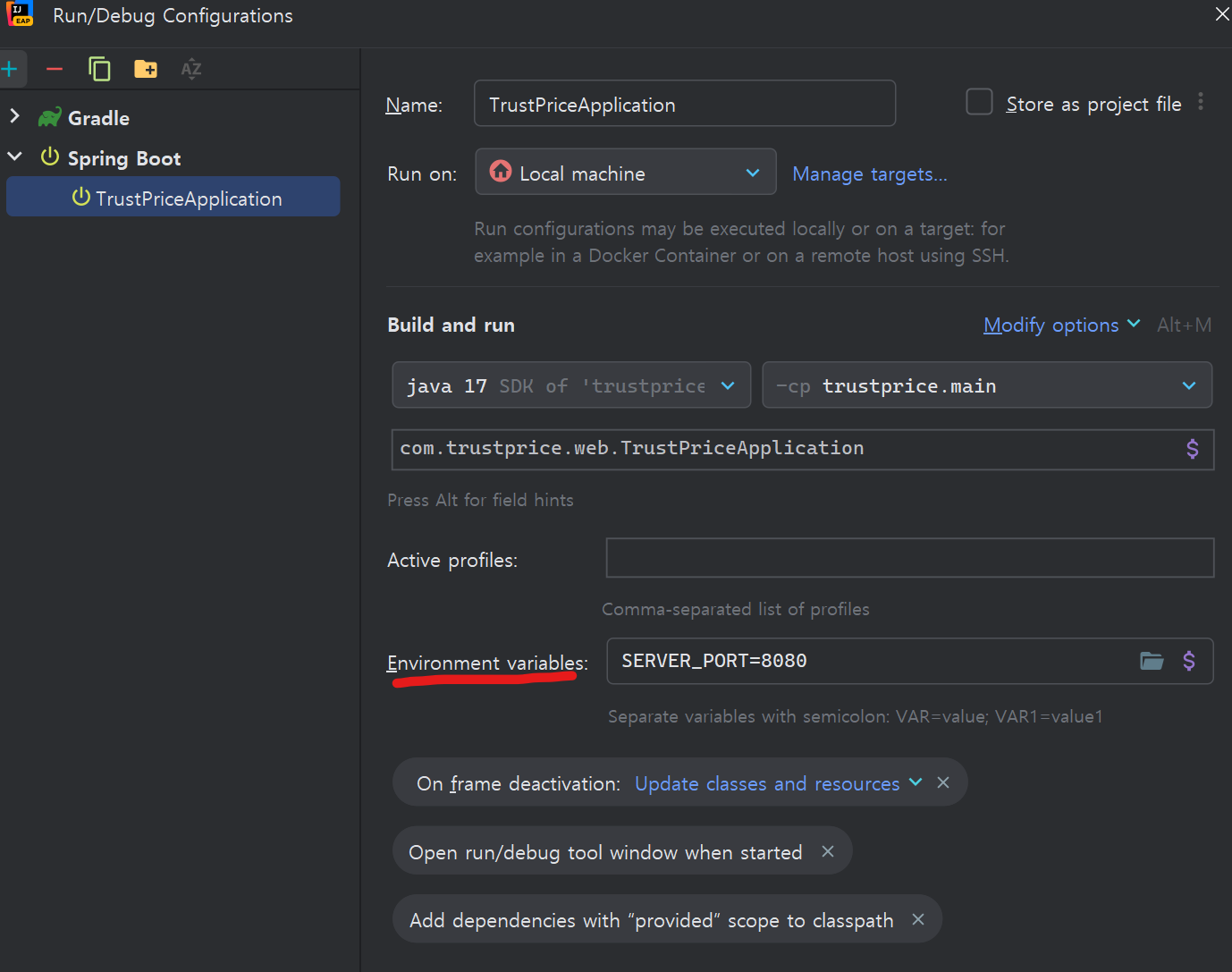 2. 실행 시 환경변수를 같이 준다.